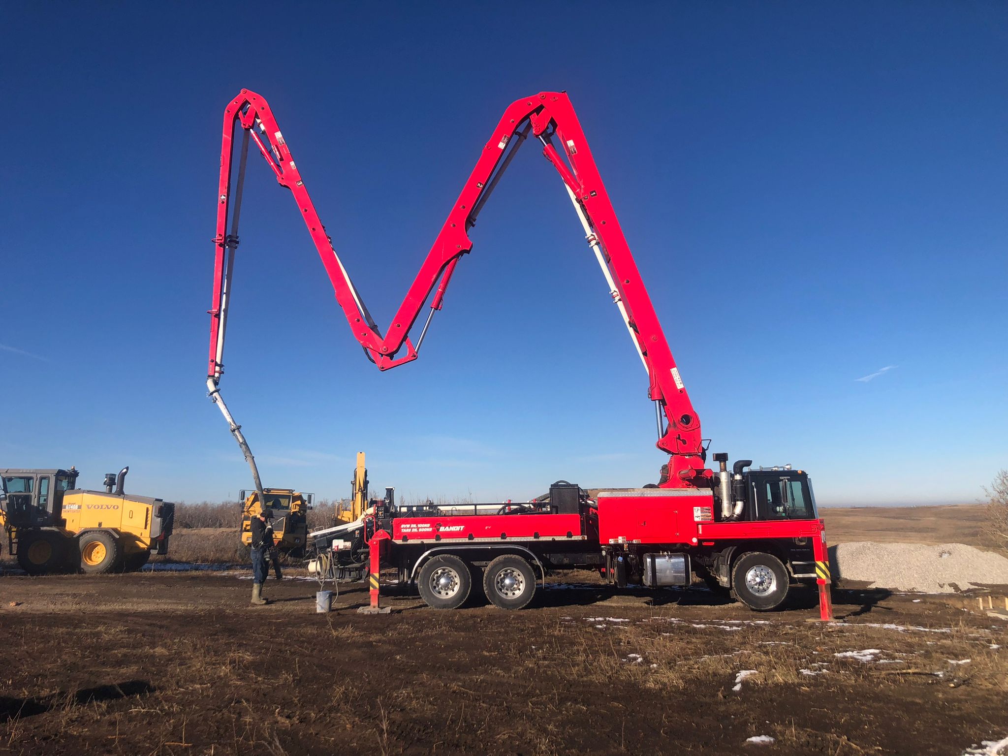 Met Sam with bandit doing a job for the boys at may city colony. Ever since he has been my main go to for all my concrete pumping needs. Very easy to deal with and always manages to make things work when I neeed him.