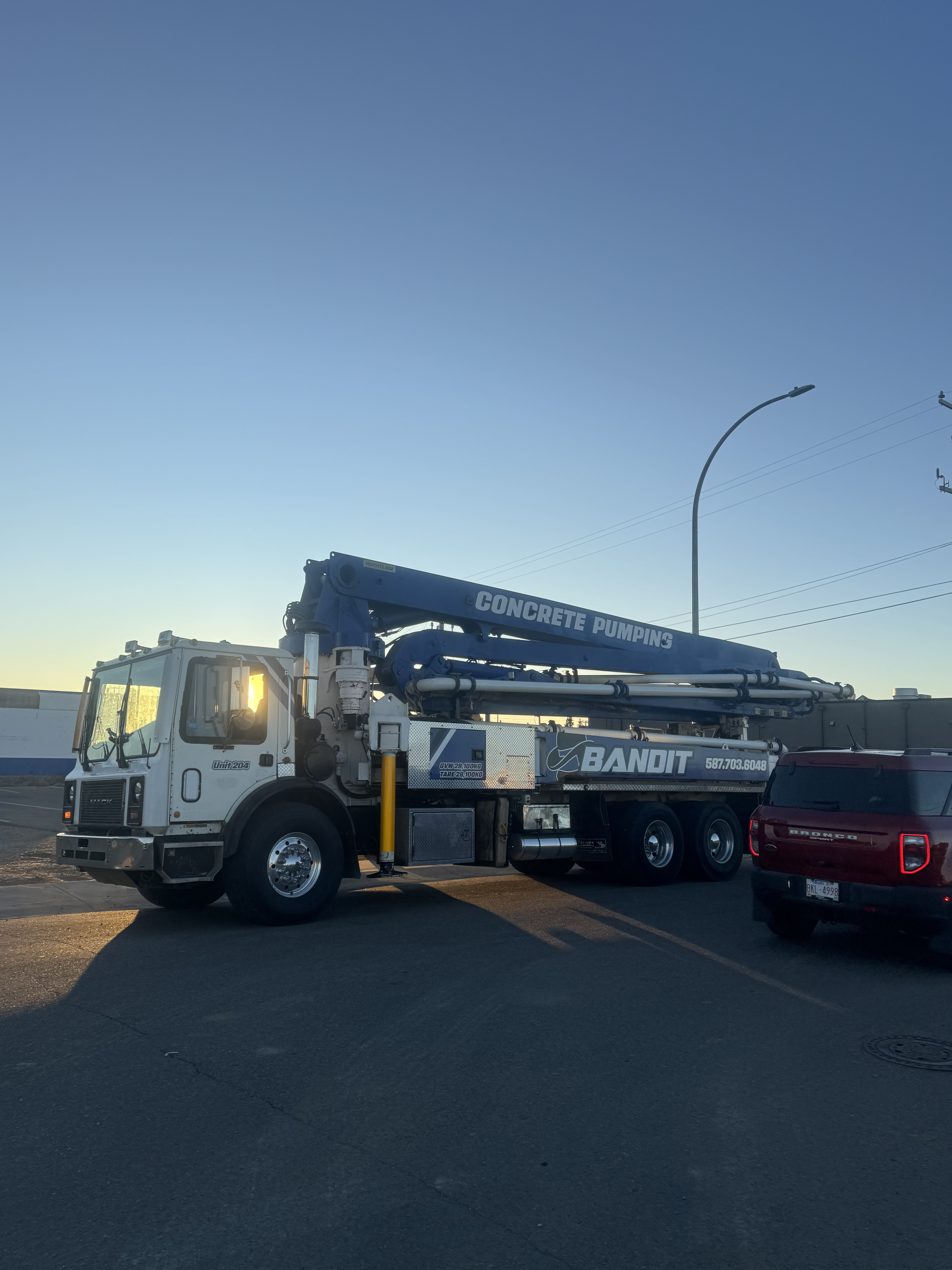 Bandit Concrete Pumping's Alliance 33m Z Boom Truck is ideal for projects in Didsbury, Olds, Carstairs, and surrounding areas between Calgary and Red Deer. We deliver precise concrete placement with our skilled operators.